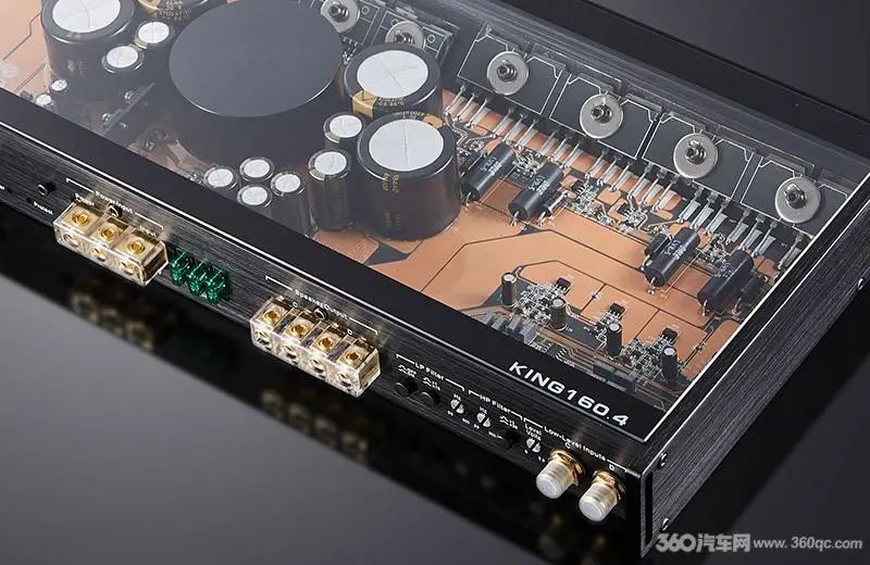体积虽小,KING系列的输出性能则有越级挑战的能力。KING160.2两声道,4Ω负载下每路额定输出180W,桥接输出可达500W;KING160.4四声道,4Ω负载下每路输出170W,桥接输出则达到485W,无论应对高端大功率需求的豪车原厂喇叭,还是后改装升级的高端扬声器,KING功放都游刃有余,配合高功率MOSFET放大和滤波电容稳压整流,更不用担心匹配和稳定性问题。