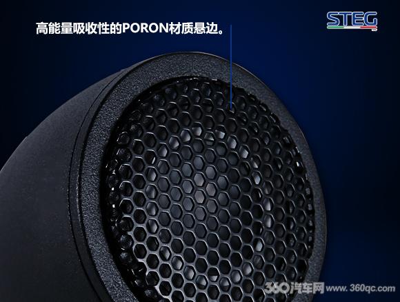 高音单元则是用反凹式复合金属振膜,这种设计其实Focal也在应用,金属振膜最大的优点也在于瞬态响应好,而且失真度极低,但有些人可能会认为金属振膜的内阻差,因此听感硬不柔和。STEG的解决方案是,应用有着高能量吸收性的PORON材质悬边。这种材质是美国罗杰斯公司研发,有着高弹性,高能量吸收性、高缓冲性的特点,这使得金属振膜的高频振动能量可以立即通过PORON悬边来缓冲与吸收,保证高音的优异听感。其实可以这样说,喇叭声底的好坏就在于搭配,材质搭配得当,技术参数设计合理,好声音就自然而来。