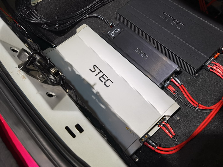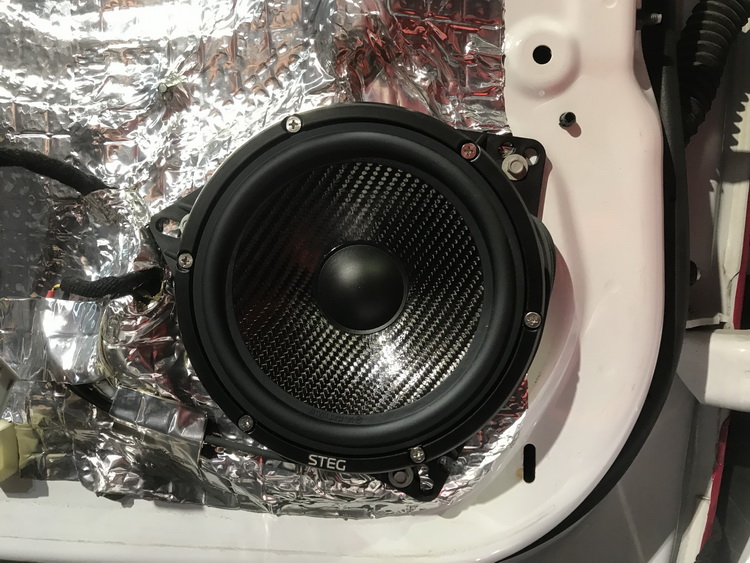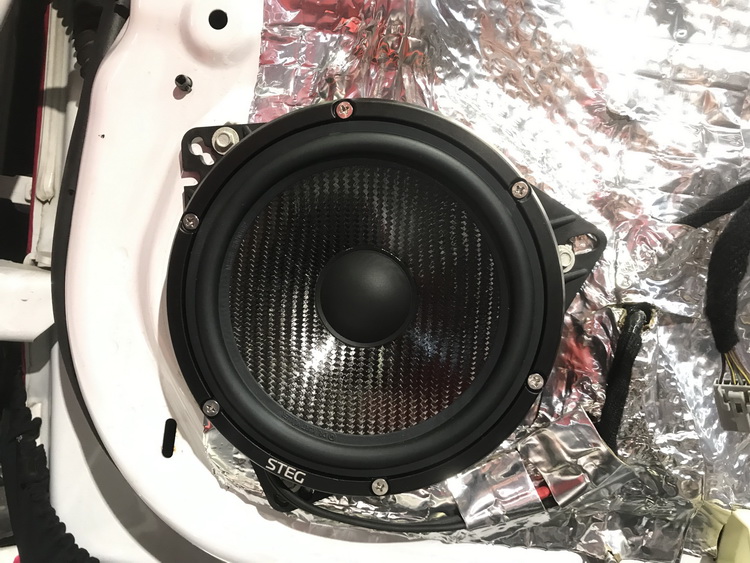 在对门板做好隔音升级后,技师将前声场喇叭升级为意大利史泰格MSS1高音,和意大利史泰格MSS6低音组成的二分频。这套喇叭的高音意大利史泰格MSS1,是由石墨烯材质做成的球顶振膜,并搭配了丝质涂胶折环悬边,使高音的音准高、泛音丰富,穿透力强。而意大利史泰格MSS6低音单元,则采用的是玻纤与碳纤混编的音盆振膜,再涂以特殊涂层,使其轻量又高刚,声线更醇厚自然,能够精准重现音乐原声。后声场搭配相同品牌的意大利史泰格MLG650C套装喇叭,能够起到很好的补充作用,让声音的细节、层次表现更加丰满,音乐的现场感更强。