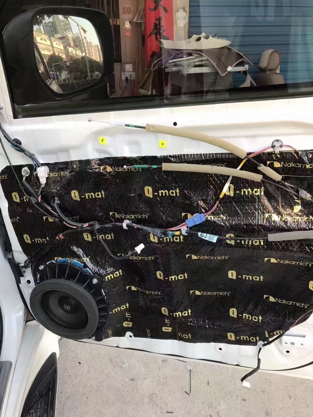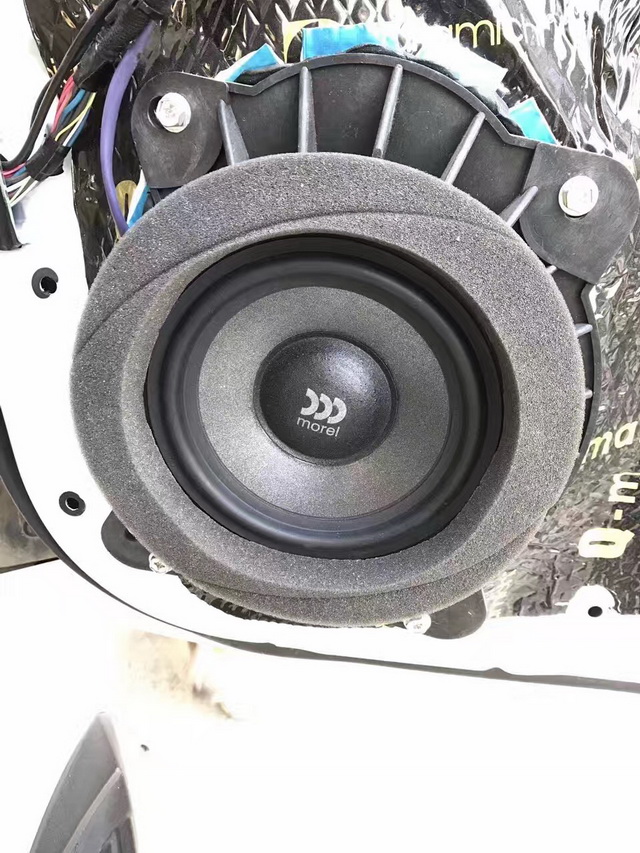 前门板隔音处理后装上摩雷优特声603三分频喇叭