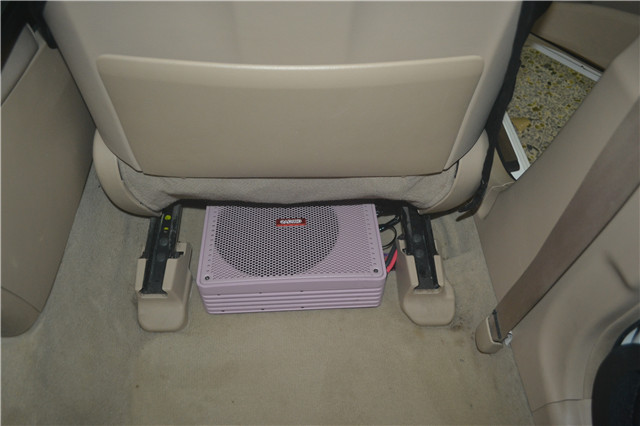 爱威V6超低音单元安装在汽车座椅底下
