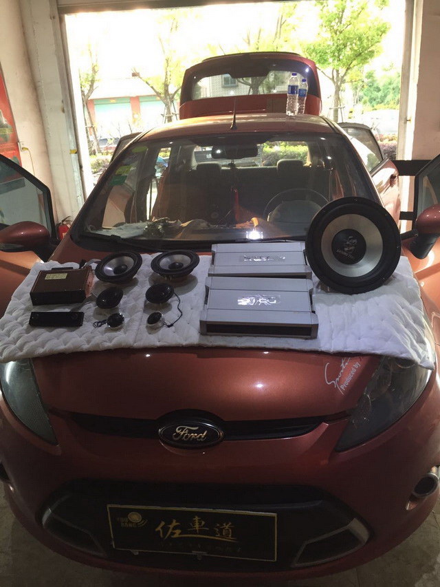 这款福特嘉年华的原车仅有4个声场喇叭,原车音响系统既没有功放的推动也没有超低音的渲染,所以原车的音响系统播放出来的音乐连最基本的听音需求都无法满足,车主为了能够听到动听的音乐来到了福建佐车道汽车音响店做音响的升级工作。