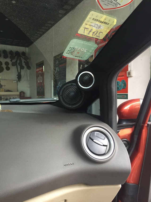 音源对音响的品质有着直接的影响,为了使得音源更为纯净改装技师将原车的主机更换成了先锋P99主机。而汽车的前声场喇叭则更换成了史太格RE65C三分频套装喇叭,它的高音和中音单元倒模安装在了汽车的A柱上,而中低音单元则安装在了汽车的原位。这种安装方式既能够增加音乐的立体感,同时也能够将音乐做到中央。