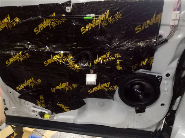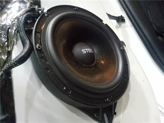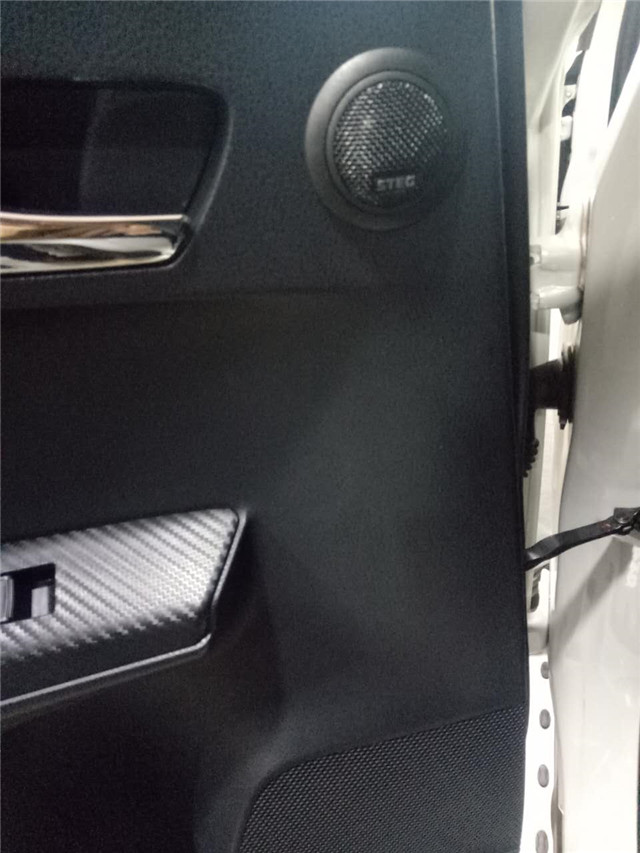 改装师使用隔音材料对汽车的门板做了双层的隔音处理,其中内层是为了降低门板共振的噪声,而外层则是为了阻止外界风噪的传入。前声场采用了史太格ST650C套装喇叭为整台车的音效打下了坚实的基础,音色干净空明,音质饱满充实,解析上清晰了然,节奏鲜明,真实而不失爆发力,浑厚中细腻如丝,听上一曲,不知不觉中就有身临其境的感觉。后声场车主选用了史太格SQ650C套装喇叭来搭配,弥补了后声场音量的不足,而且价格比较实惠是一个性价比。