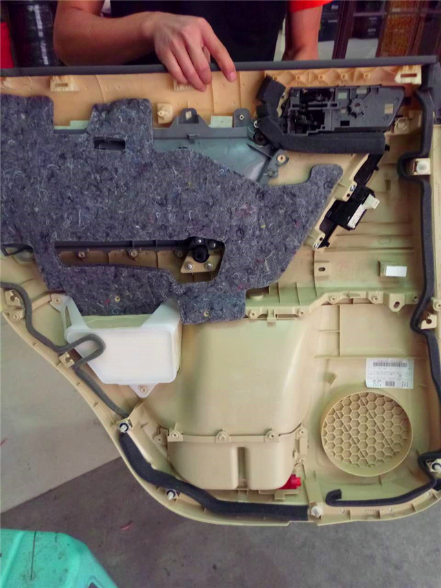 拆开汽车门板饰盖,只有一层简单的塑料薄膜