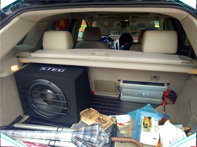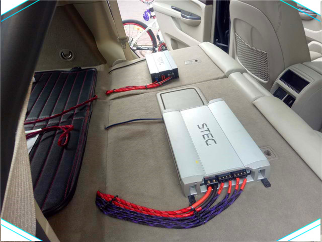 后声场搭配STEG SQ650C喇叭来补充声场,这与前声场使用的分频喇叭也形成了优势互补,让音乐的形式更加的丰富。STEG ST12超低音再为低音系统增彩添色,使凯迪拉克的汽车音响系统完美的辅助配备。为了保证功率的输出稳定改装技师为汽车的声场喇叭添加了STEG K401功放,让前后喇叭无时无刻都拥有充足动力输给,发挥最佳效果。