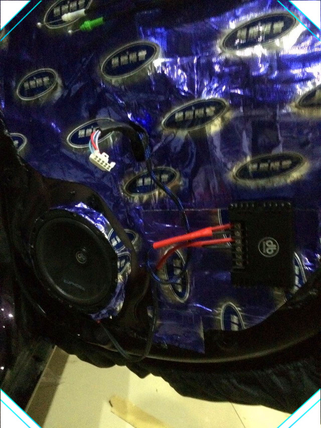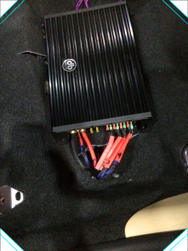 前后声场均采用美国db ES3 6C套装喇叭进行替换,该喇叭制造工艺出色,产品在用料充足,在不改变原车主机的情况也能很好的推动,通过其播放出来的音乐真实动听,定位清晰,为了增加整体音色立体感,采用爱威awave 小钢炮低音进行补充安装,其超薄低音设计也能最大限度的节省空间,为了使得整体功率稳定输出还添加DB A6 600.4功放,以及雷歌线材进行使用安装。