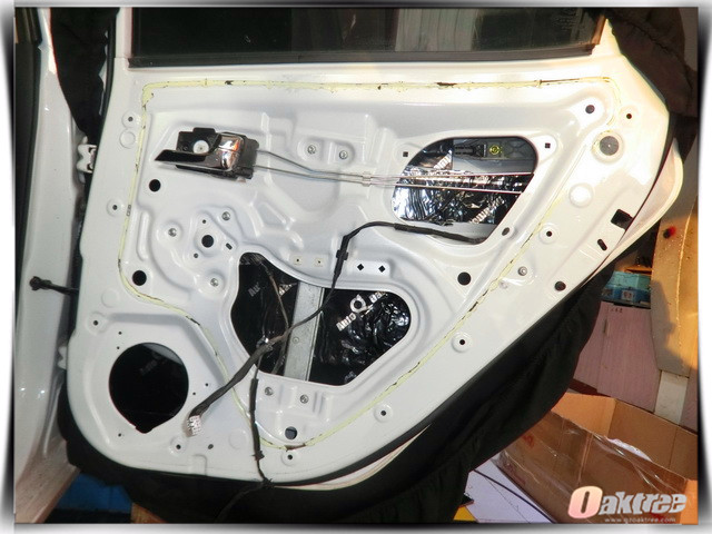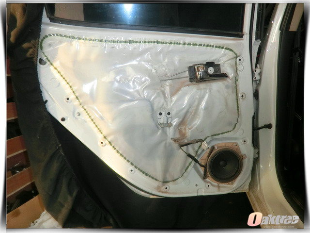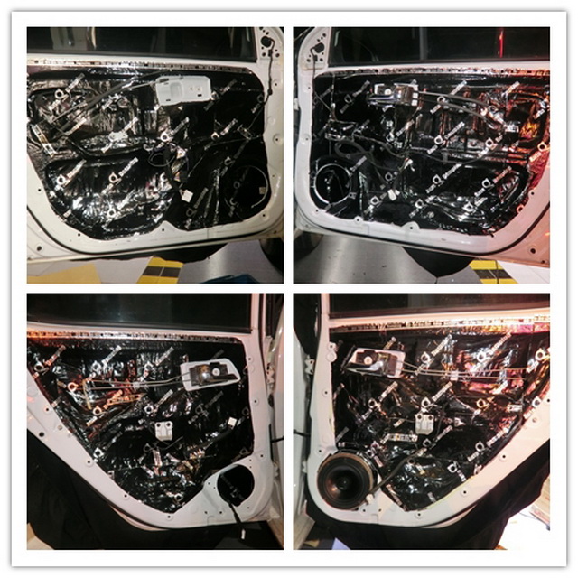 使用安博士黑玉对汽车门板做第一层的隔音处理,降低门板共振噪声