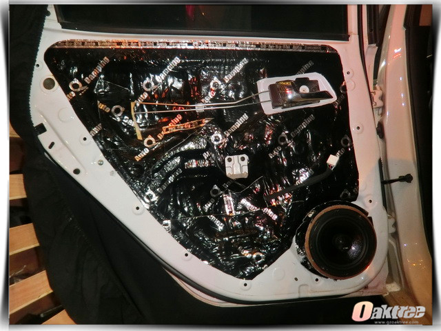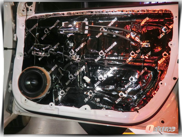 为了给汽车的声场喇叭创造一个良好的工作环境,重庆渝大昌的改装技师,使用安博士黑玉隔音材料,对汽车的门板做了双层的隔音处理,这就像是为声场喇叭制作了一个密封的箱体一般,在减少风噪对其干扰的同时,还有效的增强了音乐的立体感。