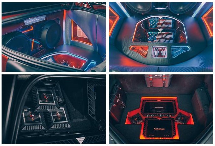 这台展示车汽车音响经过美国来福Rockfordfosgate的加持,美轮美奂的视觉冲击,以及专业发烧的音质呈现。更可贵的是营造外观美感的同时,又顾忌到音质效果的声学设计,两者的结合将汽车音响美学诠释得淋漓尽致。