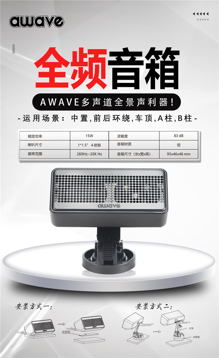 ▲ 爱威全频环绕音响ATM1安装在仪表台下方