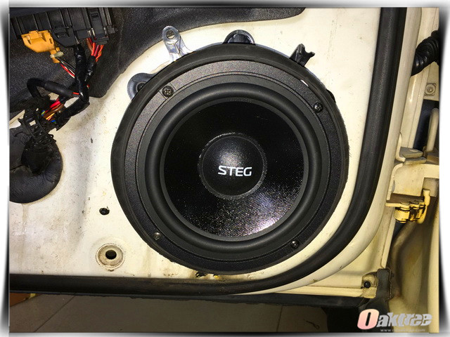 车主在平时比较喜欢听流行音乐,因此开平桥升的改装技师,将汽车的前声场喇叭替换成了史太格 STEG ST650C,它的高音单元使用了太空铝阳极高音外壳,这既增加了其耐用性,同时也让高频部分播放出来的高频通透亮丽;它的中低音采用了特殊配方的纸质音盆+专用橡胶磁钢套进口橡胶边,从而让汽车播放出来的中低音真实细腻,饱满有力。