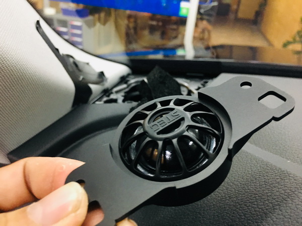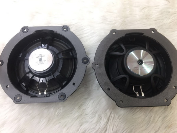 拆下原喇叭之后我们进行一番对比可以发现,原喇叭做工比较粗糙,用料也比较简单,背部磁铁原喇叭比较单薄,大动态下容易导致破音,改装师在前声场安装意大利史泰格奥迪专用喇叭MA8C,这款喇叭中低音采用特殊纸盆和高音单元的进口蚕丝,可以使低音清晰有力动态性好,并且是奥迪专车专用音响喇叭,可以做到原位无损安装。改装师将喇叭进行原位安装,其中高音单元安装在仪表台靠近A柱位置上。