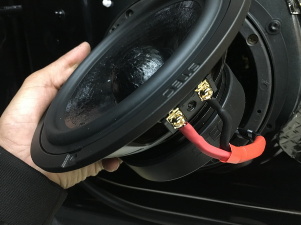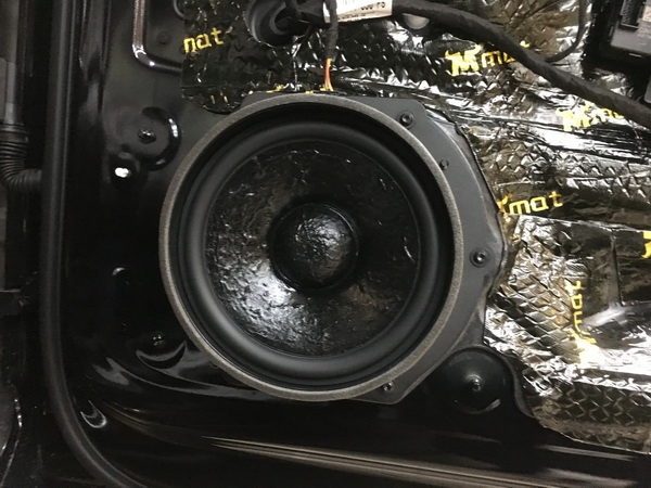 后声场采用同品牌的意大利史泰格喇叭ME650C喇叭,这款喇叭的中低音采用表面凹凸不平的松压纸质音盆,表面具有防潮涂层,声音醇厚,声底圆润温厚,其悬挂系统采用Conex弹波加上丁基胶悬边,使喇叭反应速度快且经久耐用,其最大亮点就是中频的声音呈现宽松丰富,久听不厌。改装师将喇叭进行原位安装。