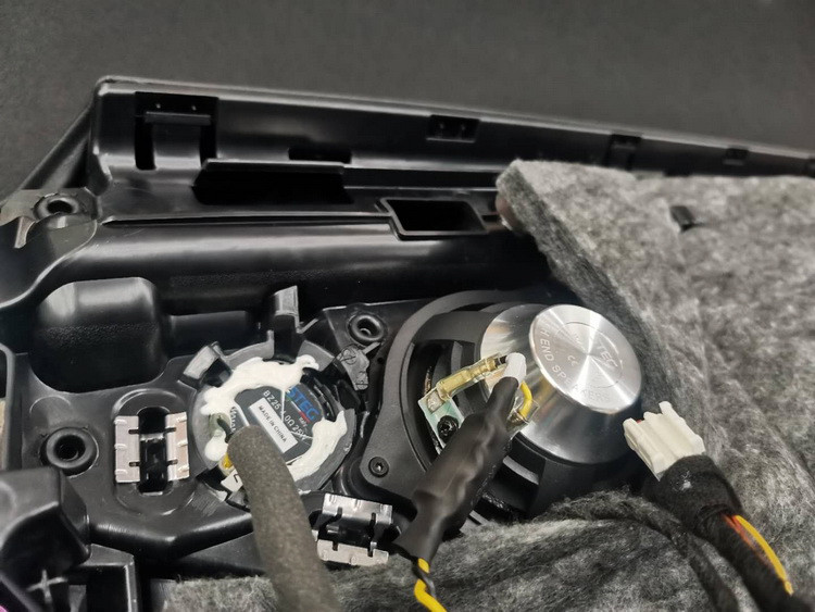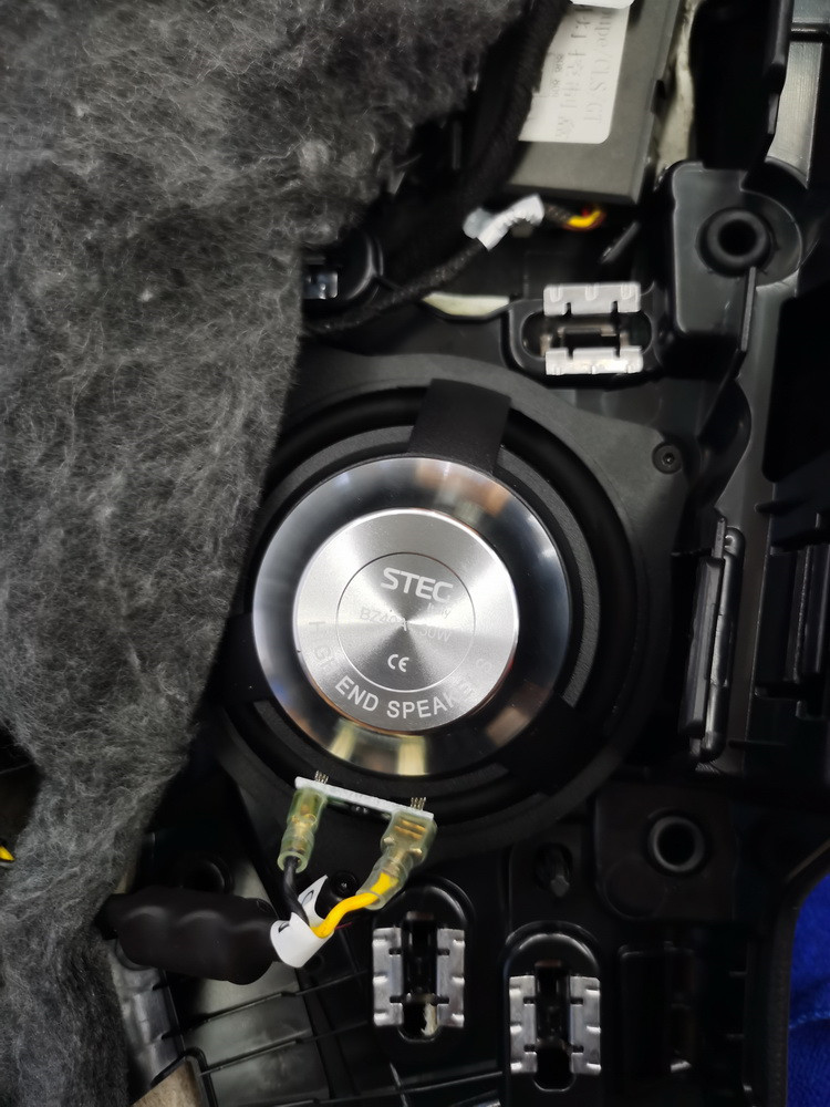 除了音质表现出色外,这套喇叭的最大特点,就是能够原位置、原线路无损对插安装,满足车主对无损改装的需求。技师将意大利史泰格奔驰专用BZ40A×2中音套装安装在前声场位置,线材连接紧密、喇叭安装到位,使复原后的门板没有丝毫的改动痕迹。