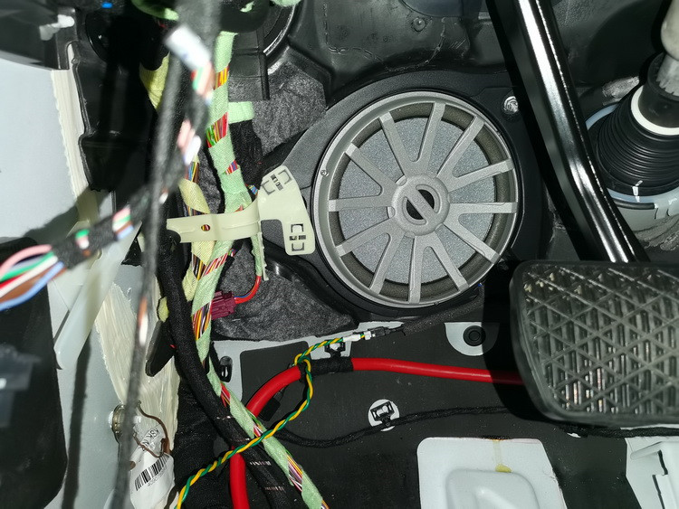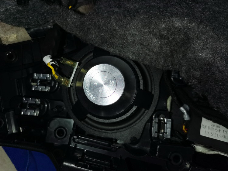 接下来在中控台下方的低音位置,技师将意大利史泰格奔驰专用BZW80L/R低音安装在汽车原位,完全按照车内空间声学环境设计的喇叭,配合中、高音喇叭,能够具有最佳的声场表现。