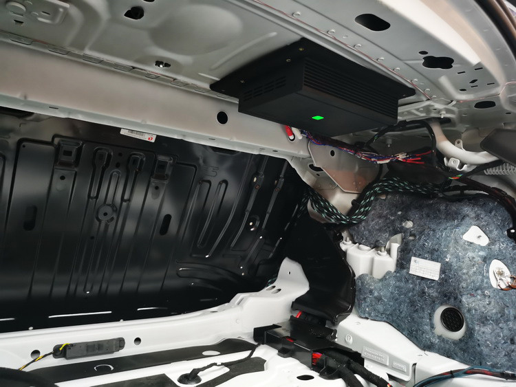 喇叭的升级完成后,技师对汽车音源的部分也进行了升级。使用专用线束无损对插主机,为汽车添加了一台爱威DSP6v2处理器。将处理器吊装在尾箱顶部,能够优化主机的音频信号,提供强劲的功率输出,从源头解决音质不佳的问题,为好声音打下坚实的基础。