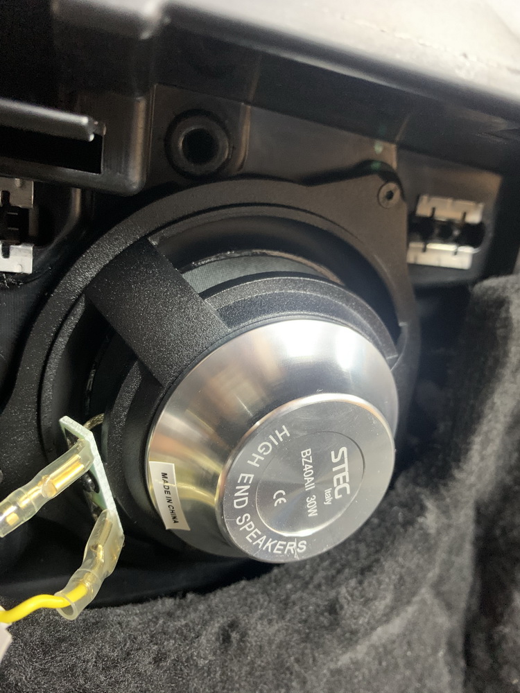 为了充分保证前排的音质效果,改装技师还特意将中置喇叭更换为史泰格BZ40C中置喇叭,这样可以让前排的音质更真实、立体,能够给人一种身临其境的感觉。