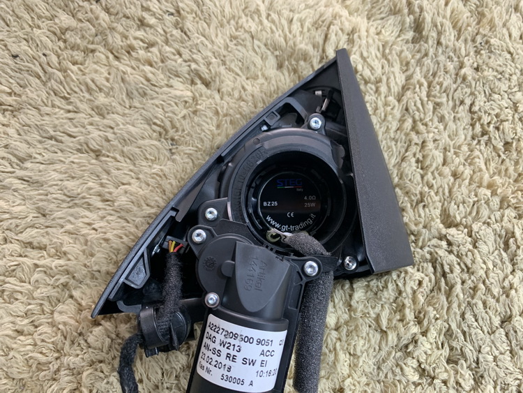 前声场更换的是由史泰格BZ40All套装和史泰格BZW80L/R中低音组合而成的三分频套装喇叭,这套喇叭的高音部分更加高亢亮丽,中音部分音色饱满,而中低音部分沉稳有力,经过分频器合理的调节,也让各个频段之间衔接自然,平稳顺畅。而且作为奔驰专车专用的声场喇叭,将其安装在汽车原位刚好合适,避免了对汽车原有线路的过多改动。
