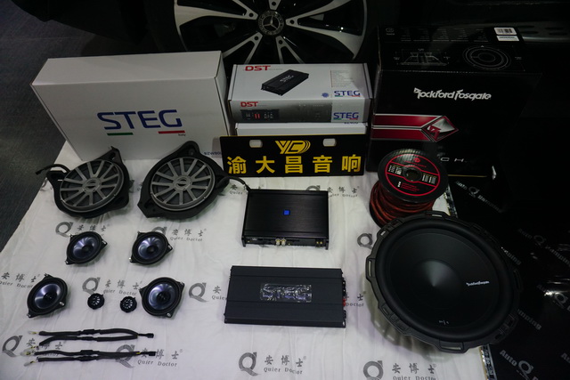 在使用安博士黑玉隔音材料,对汽车的门板做了双层隔音处理之后,重庆渝大昌的改装技师,将汽车前声场的高音单元,更换成了意大利史太格STGE BZ25喇叭,它所播放出来的音乐高亢亮丽,极具穿透力。意大利史太格STGE BZ40A中音单元,可以使得音乐在中频部分的表现更加饱满。而意大利史太格STGE BZW80L/R专用8寸低音喇叭的添加,则让音乐沉稳有力,更具有力量感。后声场使用的意大利史太格STGE BZ40D奔驰专用同轴喇叭,也与前声场喇叭,保证了音乐味道的统一性。