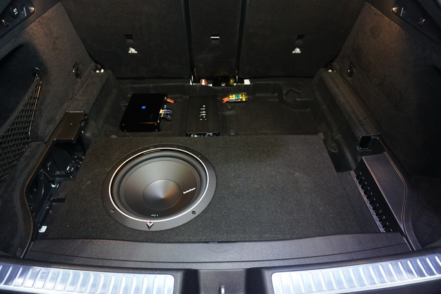 原车音响系统,没有超低音单元,这使得音乐在低频部分的表现力不够,所以重庆渝大昌的改装技师,为汽车音响系统添加了一只美国来福P1S4-12 12寸低音炮,以使得音乐在低频部分的下潜力度更深。为了节省存储空间,也为了减少振动对超低音单元的影响,改装技师为美国来福P1S4-12 12寸低音炮制作了木质箱体以后,安装在了尾箱的底部。