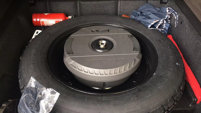 车主对低音部分有较高的要求,因此改装技师为汽车音响系统,添加了一只RA11备胎炮超低音单元,它可以有效增加低音部分的下潜力度,让音乐在低频部分的表现更具有震撼力和力量感。RA11备胎炮设计合理,将其安装在备胎中间刚好合适,并不会占据任何多余的储物空间。