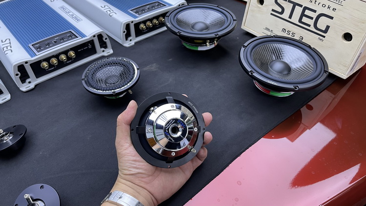 前声场选择的是一套由意大利史泰格MSS6、MSS3和MSS1自由组合而成的三分频套装喇叭,这套喇叭的高音单元使用了石墨烯振膜,让高频部分自然细腻、十分通透;中音和中低音单元的振膜,使用的是玻纤与碳纤混编的振膜,这种材质的振膜质量轻、刚性高,并使用了钕磁进行驱动,让音乐的中频部分音色饱满,中低音部分沉稳有力。后声场使用的意大利史泰格两分频 MSS6+MSS1,也与前声场形成了音乐味道的统一性。