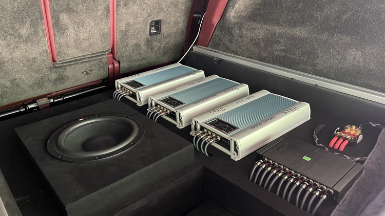 原车主机的解析力较差,通过其播放出来的音乐音频信号质量很差,所以技师为汽车主机添加了一台awave DSP-12处理器,它可以增强主机的解析力,使得音频信号更加干净完整。而为了让声场喇叭充分发挥出其应有的效果,技师还为音响系统添加了三台意大利史泰格M.MSK130.4功放。