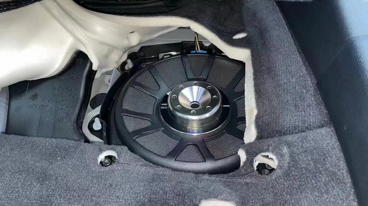 史泰格STEG宝马专用套装中低音单元安装在汽车原位