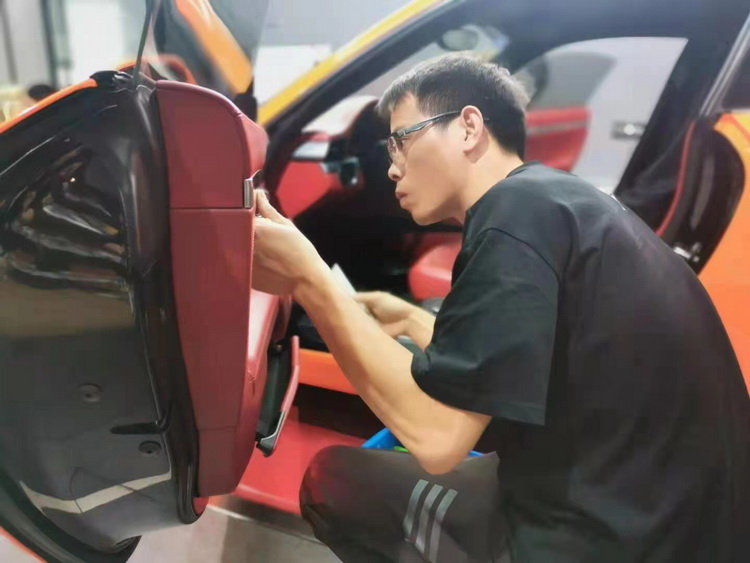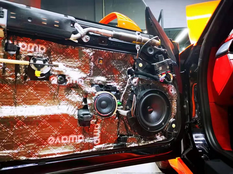 原车不仅喇叭品质差,而且门板的隔音措施简陋,对此技师使用爱威隔音对门板进行了升级,有效抑制了门板噪音,也为汽车喇叭提供了良好的工作环境。