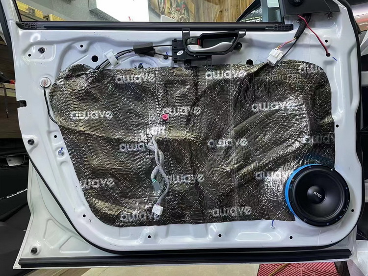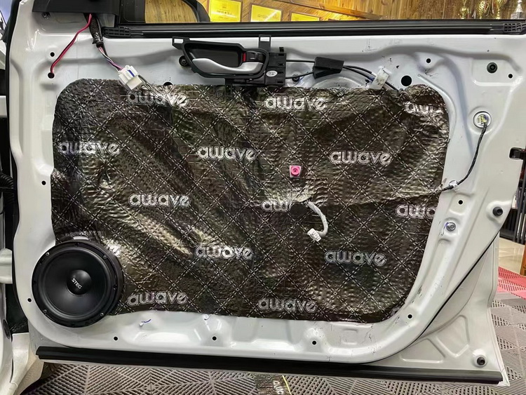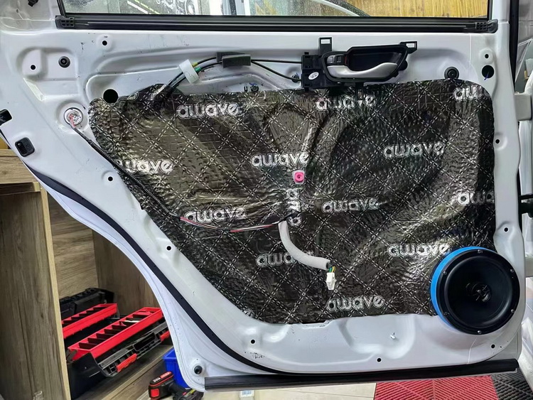 原车门板隔音措施较为欠缺,汽车行驶门板处产生的噪声会影响音响的品质。技师使用爱威隔音材料对门板做双层隔音处理,让门板形成一个密封箱体,既可以减少门板处噪声,同时又能够增强音乐的立体感。
