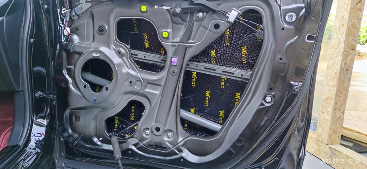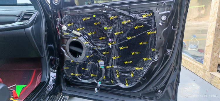 原车门板隔音措施欠缺,汽车行驶时门板处产生的噪声会对音响品质产生很大的影响。因此技师使用大麦隔音材料,对汽车的门板做了双层隔音处理,让门板形成一个密封箱体,有效减少了噪声对音响品质的干扰。