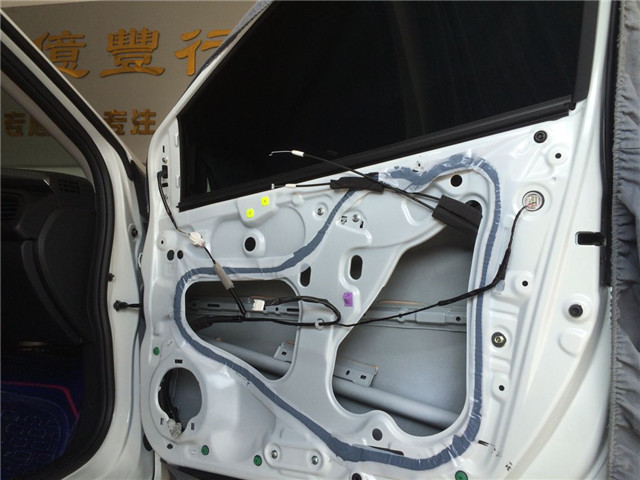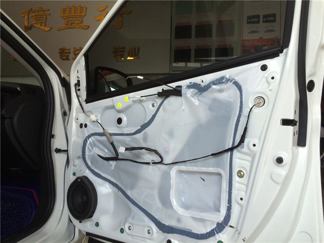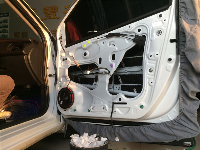 音响升级的第一步是为汽车创造一个良好的工作环境,中山亿丰行汽车影音的改装技师将原车劣质的隔音材料清除,然后使用隔音材料对汽车的门板做了双层的隔音处理,这就像是为声场喇叭制作了一个箱体一般,使得汽车的音响系统播放出来的音乐更加纯净、立体感更强。
