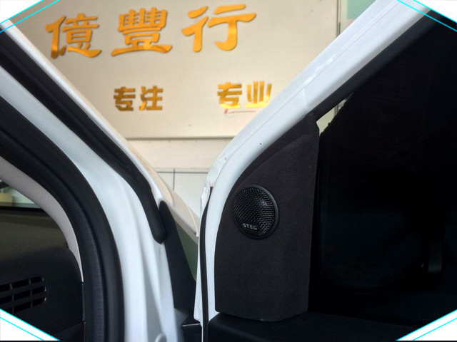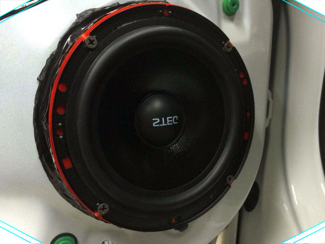 在使用隔音材料对汽车的门板做了全面的隔音处理之后改装技师将汽车的前声场喇叭替换成了STEG史太格SQ650c套装喇叭,它的高音单元安装在了门板的三角位处,这也是水平听音的最佳位置,而中低音单元则安装在了汽车的原位。后声场使用的是先锋同轴喇叭,一方面它能够与前声场喇叭形成优势互补,另外一方面它在安装的时候也更加的简单方便。