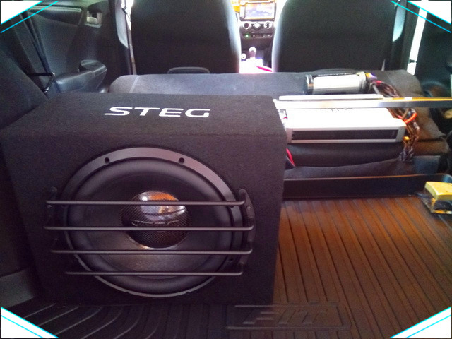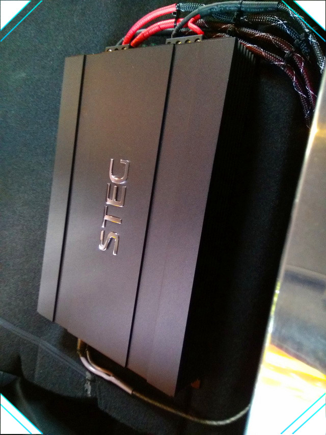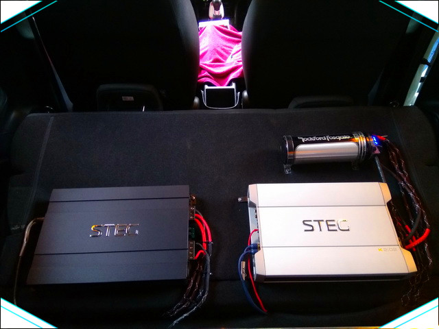 由于汽车声场喇叭的工作环境较为恶劣,所以如果没有功放的推动音乐的稳定性就会受到影响,同时还会影响音响器材的使用寿命,因此江门爱音乐的改装技师在音源端为汽车添加了一台江波调音师做调音处理,同时为汽车的声场喇叭添加了两台STEG史太格功放以保证功率的输出稳定。