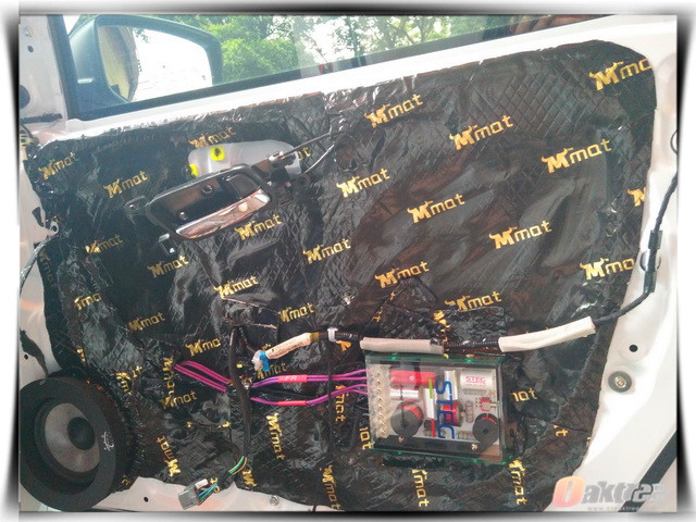 改装师傅对于汽车音响的改装自然有专业的分析判断,改装前的隔音是必不可少的,改装师傅采用大麦隔音材料先对门板进行隔音降噪处理从而使得喇叭有个良好的运行环境,后将前声场喇叭更换成意大利史太格STEG IMPRINCIPE 65C两分频和SQ30中音组合而成的三分频喇叭。