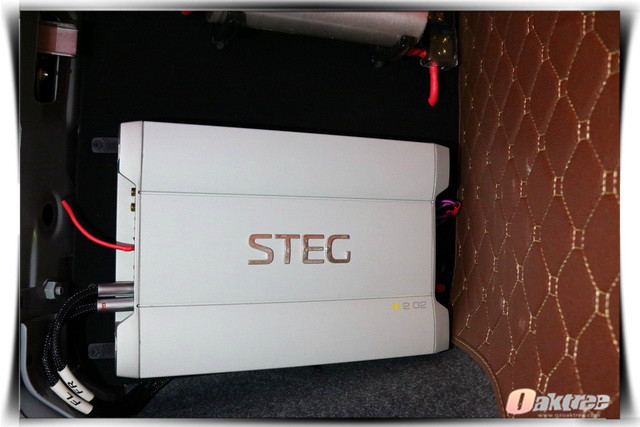 为了解决整体的功率输出问题,还分别添加史太格STEG ST202以及史太格STEG K202功放,优美声DSP408解决音色整体音源端的输出纯净度。同时为了增强音效的震撼感还添加太格STEG ST12 12寸低音炮安装在尾箱,采用雷歌纯铜线材保证整体输出的稳定性,减少输出过程中的损耗。
