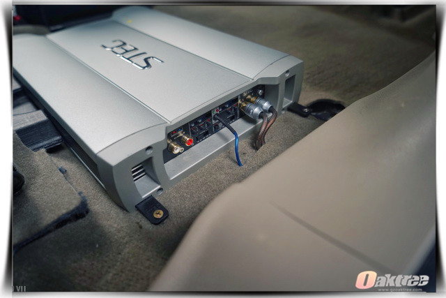 传统的超低音单元一般都是安装在尾箱,但北京木鱼MUYU反其道而行之,而是将美国kicker L78寸超低音单元安装在了中央扶手处,这样能够让车主更近距离的感受到超低音单元带来的震撼。而用来推动声场喇叭的意大利STEG史太格 k401功放和意大利Steg史太格 k201功放则分别安装在了汽车的座椅底下。