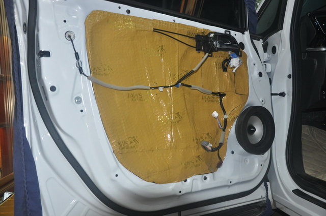 使用大白鲨黄金甲隔音对门板做双层隔音,为声场喇叭创造一个良好的工作环境