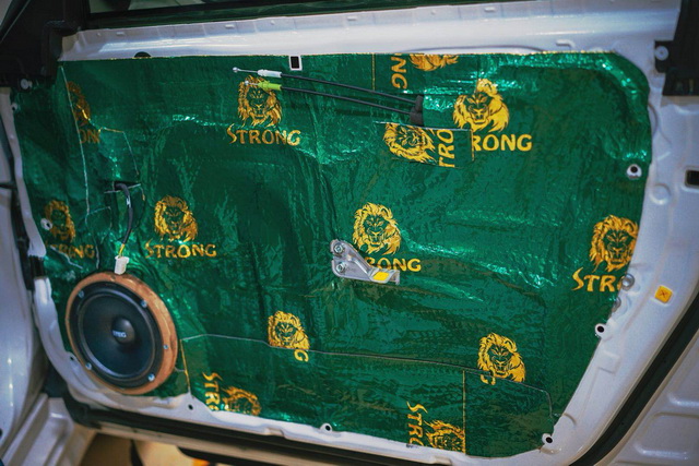 在使用隔音材料对汽车的门板做了隔音处理之后,改装技师将汽车的前声场喇叭,替换成了意大利史太格STEG MS650C两分频套装喇叭,它的高音单元使用了丝膜球顶设计,让音乐的高频部分清晰亮丽,穿透力极强;中低音单元使用了大音圈设计,并使用低阻尼悬边进行保护,让中低音单元灵敏性高,弹性十足。后声场使用的意大利史太格STEG SQ650同轴喇叭,则与前声场喇叭形成了优势互补,让音乐的表现形式更为丰富。