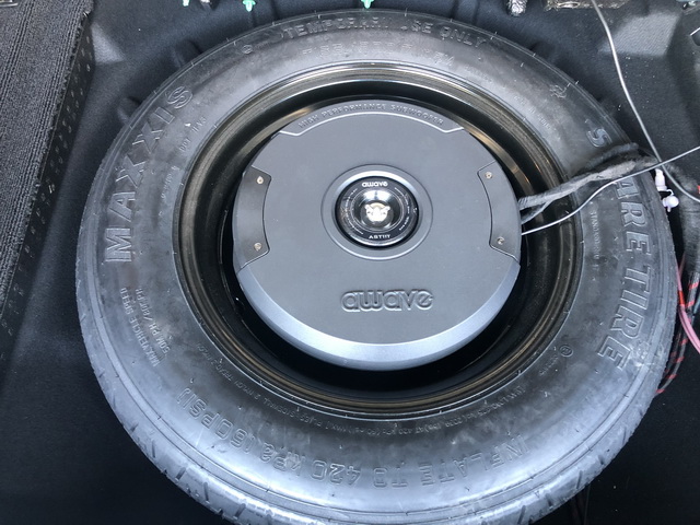 车主对低音部分有较高的要求,因此改装技师为汽车音响系统,添加了一只awave爱威 AST11T超薄备胎炮,它可以有效增加低音部分的下潜力度,让音乐表现更具有弹性。而且awave爱威 AST11T超薄备胎炮设计非常巧妙,将其安装在备胎中间刚好合适。