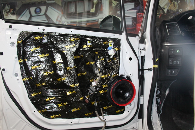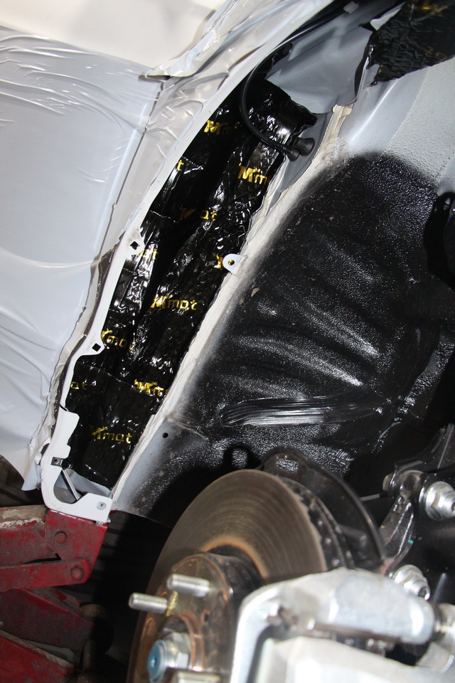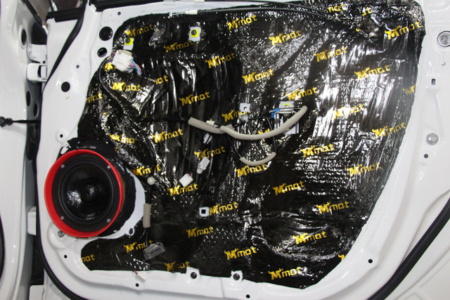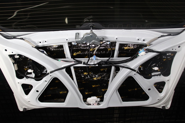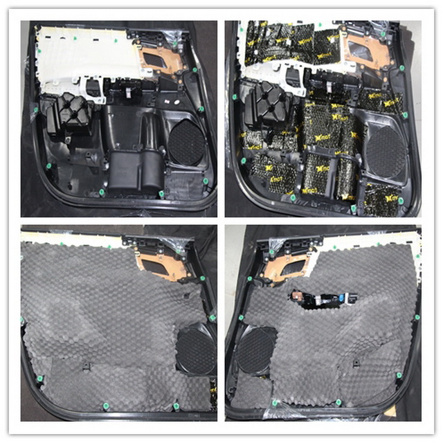 外界传入的噪声主要有风噪和胎噪两种。为阻止风噪的传入,改装技师使用大麦隔音材料,对汽车的门板做了双层隔音处理,而为了阻止胎噪的传入,改装技师则对汽车的轮弧做了隔音处理,这就切断了外界噪声的传播途径,减少了外界噪声的传入。