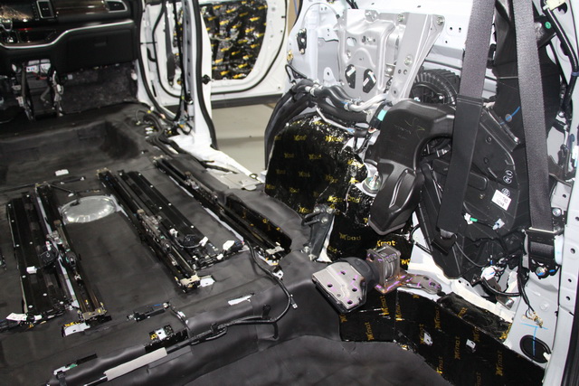 汽车的噪声主要可以分成两种:一种是汽车自身的共振噪声,一种是外界传入的噪声。为减少汽车自身的共振噪声,改装技师使用大麦隔音材料,对汽车的底盘、尾箱、顶棚和引擎盖等部位,做了全面隔音处理。这不仅可以降低汽车自身共振噪声,同时还可以增强钣金刚性。