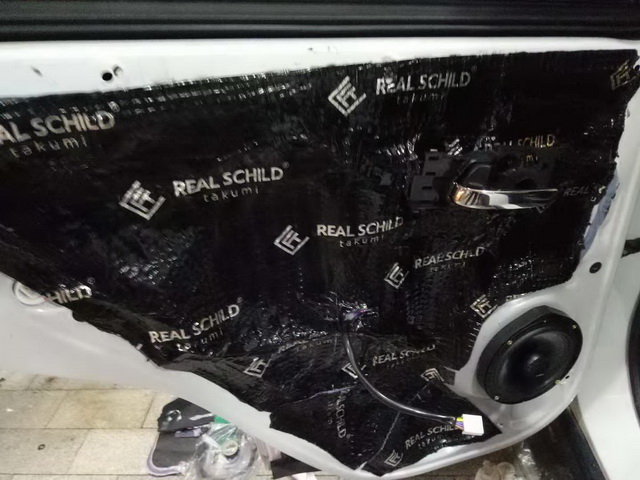 使用隔音材料对门板做双层隔音,为声场喇叭创造一个良好的工作环境