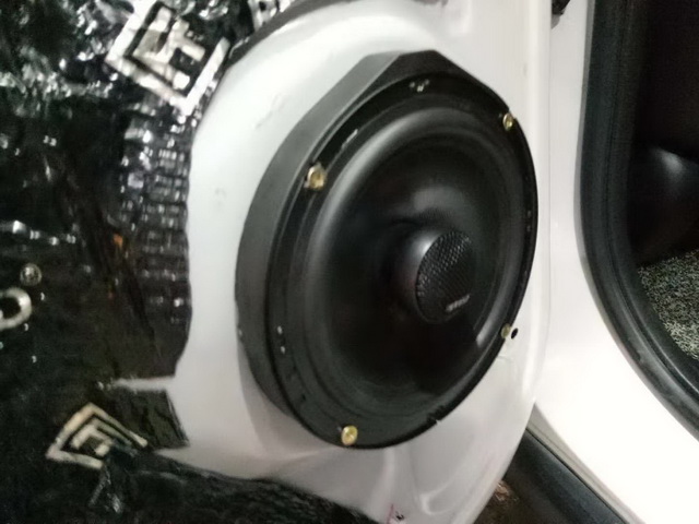 在使用隔音材料,对汽车的门板做了隔音处理之后,改装技师将汽车的前声场喇叭,替换成了丹麦丹拿232套装喇叭,它所播放出来的音乐清晰亮丽、层次感分明,适合用来播放流行和人声类歌曲。