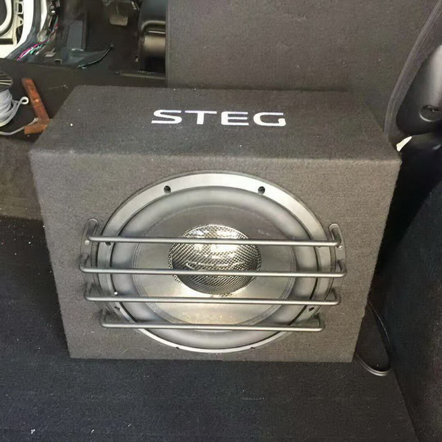 后声场使用的是史太格STEG SQ650同轴喇叭,同轴喇叭的设计,第一使得安装变得简单方便,采用原位安装即可,无需对原有线路做任何改动;第二具有很高的瞬态反应,驱动起来更加的轻松;第三使得高频和中低音频的同步性更高。为使得音乐在低频部分表现更具有张力,改装技师还为汽车音响系统,添加了一只史太格STEG ST12寸低音单元。