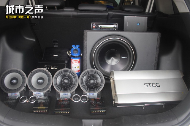 根据车主听音喜好,将汽车的前声场喇叭,改装成为史太格STEG ME650C套装,它的中低音单元使用了松压纸盆,使得中低音频醇厚饱满、弹性极佳;丝膜球顶高音单元,则可以让音乐更加通透。后声场使用的史太格STEG MT650C喇叭,也能与前声场喇叭形成音乐味道的统一性。