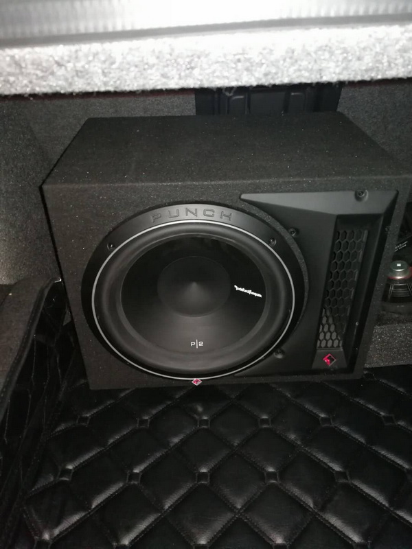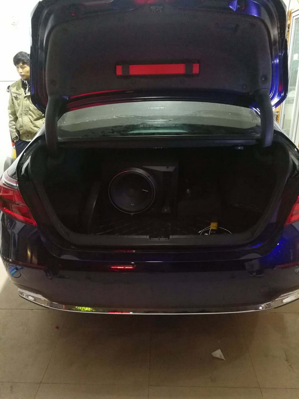 在后备箱位置的隔音完成后,为给汽车音响增加低频音效果,并使声音下潜力度更深,感染力强,安装一台美国来福P2十二寸原装箱体在后备箱处。同时为汽车安装了两台意大利史泰格K401白金版发烧级四路和美国来福P500x1bd单路功放为喇叭进行助力,增加喇叭功率的同时,使喇叭在大动态表现下也能发挥出均衡效果。