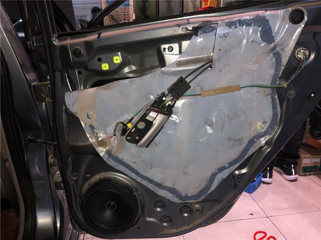 改装师在改装音响前,首先拆除了原车门板,发现原车门板只有一层简单的塑料薄膜,这样并不能进行有效的隔音。但是因为车主的预算问题,这次只好先放弃汽车的隔音,后期再来做隔音,一步步慢慢来。