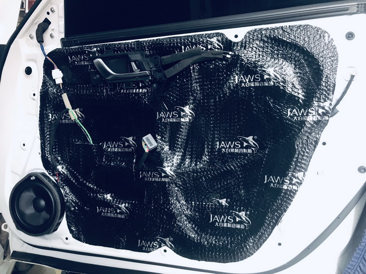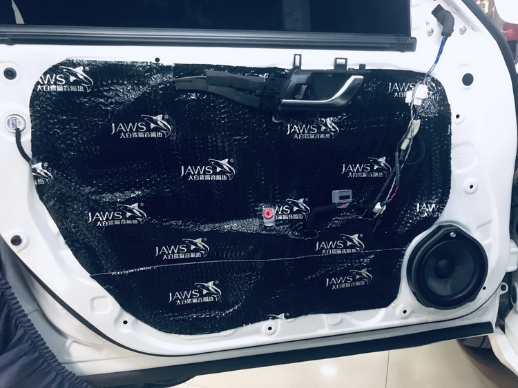 使用大白鲨环保隔音材料对门板做双层隔音处理,为喇叭提供良好的工作环境